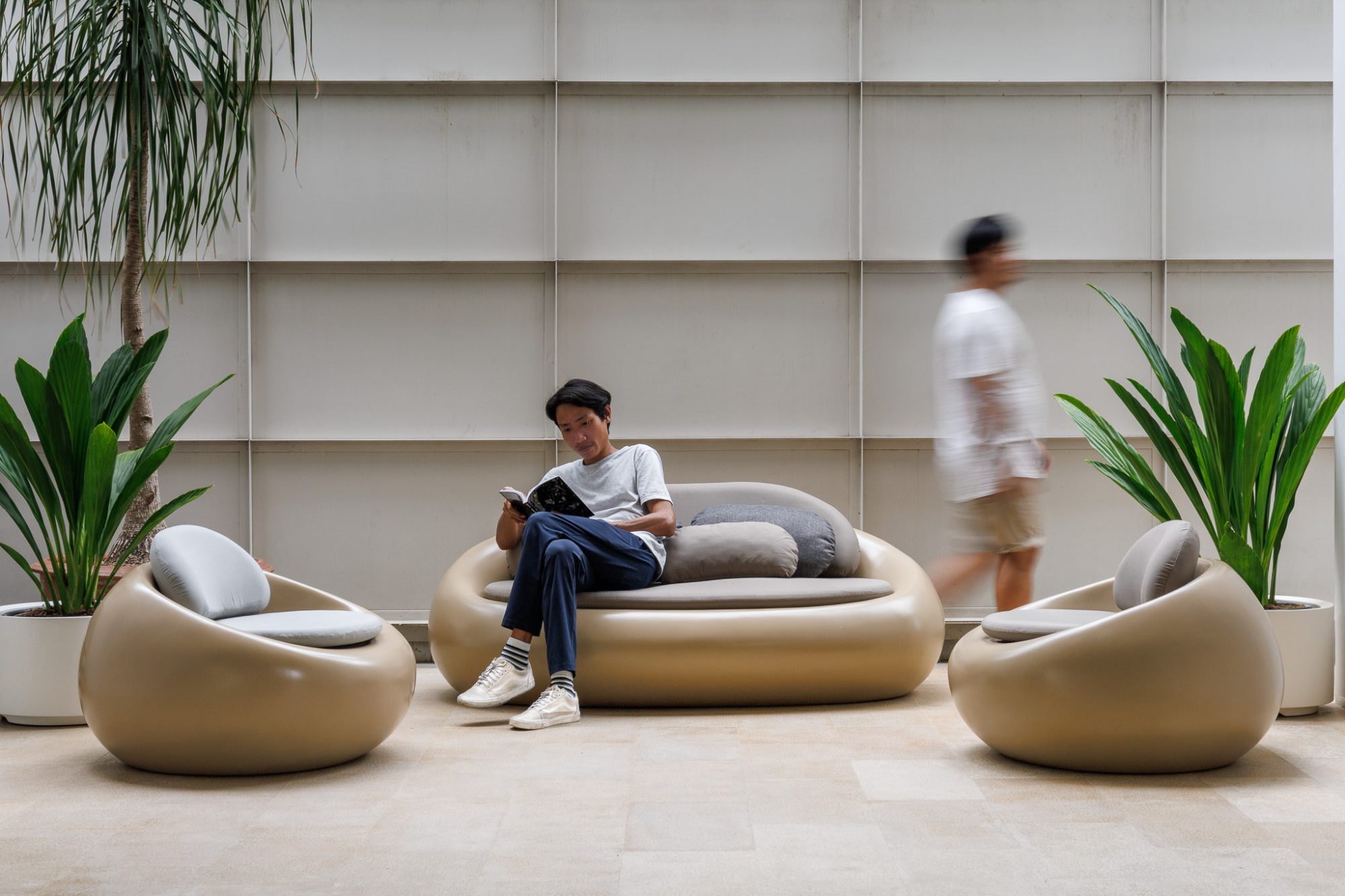 With its distinctive shape and well-proportioned design, PEBBA seating can create a striking focal point in any open space. Whether placed individually or arranged in groups, PEBBA adds a touch of uniqueness to the environment. It helps establish a rhythmic and dimensional connection with the surrounding architecture, harmonizing with the beautiful lines. This allows users to experience a level of beauty and relaxation like never before.